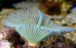 Tubeworms are small worms that live in water and build hard carbonate/limestone tubes. Tubeworms, or “Featherdusters”, have feathery headdresses which they use for gas exchange and to extract suspended food particles from the sea-water.